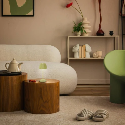Brilo unplugged Riffle LED battery-powered mini table lamp with light edge on the lampshade The Brilo unplugged Riffle LED battery-powered mini table lamp combines modern design with functional lighting. The integrated LED light source provides energy-saving light with a warm white colour temperature of 2,700 K. A special feature of this table lamp is the practical, stepless touch dimmer. The scope of delivery includes a USB-C charging cable, which supports wireless use of the light. The light also has a memory function. - With a full battery, up to 24 hours of light at the lowest brightness setting - With mechanical on/off switch to prevent deep discharge - A USB-C charging cable is included in the scope of delivery - Awards: German Design Award 2025, Best of Design Award 2025 from Schöner Wohnen, 2nd place Light of the Year