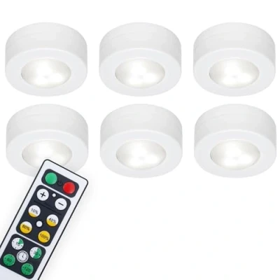 AmazonThe White LED functional Lights can be conveniently attached to any smooth clean surface using the 3m adhesive pads included - perfect for (children's) bedrooms, cupboards and stairwells The LED lamps are battery powered, meaning that no cables are needed - Required batteries: 3 x AAA batteries (not included) The remote control enables the lights to be dimmed to suit your surroundings The LED lamps are fitted with a practical timer feature - You can choose intervals of 10, 30, 60 or 120 minutes Additional touch-sensitive on/ off switch on the surface