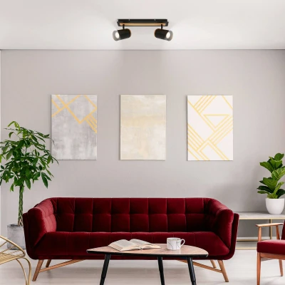 Duta 2-bulb ceiling spotlight with adjustable heads The Duta ceiling spotlight combines the elegance of metal with the natural warmth of wood, offering a stylish lighting solution for various living areas. With its 2-bulb design, it provides even illumination and creates a pleasant atmosphere in living rooms, dining rooms, bedrooms or kitchens. The combination of black metal and light wood gives the spotlight a timeless aesthetic that blends seamlessly into different interior styles. - Externally dimmable