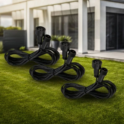 HIGH PROTECTION RATING IP67 - These cable extenders are fully dustproof and protected against temporary immersion in water, making them extremely reliable and durable, perfect for use in all weather conditions, and in the ground GENEROUS DIMENSIONS - With a length of 2m and a diameter of 15mm, these cables allow for flexible extension of your installation Tool-free installation: thanks to the practical connectors, cables can be inserted easily and without additional tools into your existing or planned garden system VERSATILE FLEXIBILITY Whether you want to extend your garden lighting or simply bridge greater distances between light sources, these cable extenders provide the flexibility you need Note: We recommend that you do not exceed the maximum total cable length of your garden system by 15m