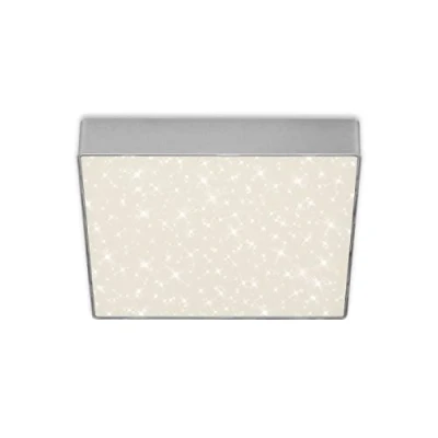 This modern, LED ceiling light in silver, enhances any room thanks to the simple and frameless design, in combination with the starry sky Thanks to the star decoration, the LED lamp is ideal as a children's room lamp or hallway lamp With 4000 Kelvin, the starry sky glows with neutral white light colour. 16 watts and 1600 lumens radiate your hallway, living room or bedroom brightly The product dimensions are 212 x 212 x 36 mm (L x W x H) This product is a surrounding product. Surrounding products are lights that can be disassembled for separate verification of the included light source(s). This product contains a light source of energy efficiency class F