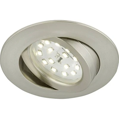 Very small mounting depth (30 mm/1,18 inches). Easy and safe installation via the terminal box. No transformer needed. Connected directly to the 230 V power supply. 5 years warranty. This round rotatable led downlight in satin nickel is arbitrarily position able, combinable and expandable. Cutting Hole Size: 68mm/2,68 inches diameter. Recessed lamp diameter: 82mm/3,23 inches. Installation without spring clamps. Due to special clamps the downlights are suitable for use in any material regardless of the ceiling thickness. Energy consumption of 5 Watts and 400 Lumens (equivalent to 40 Watts standard halogen bulbs). Cozy warm white light (3.000 Kelvin). Protection class II. Approx. 80% cost savings compared to incandescent lighting. Additionally available: diffusor which transforms the technical LED-optic into more homely lighting. Article no.: B00NR5DN7M.