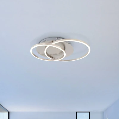 Lights.coLED ceiling light Frames - dimmable in steps via the wall switch The LED ceiling light Frames consists of two large rings, which are arranged offset on top of each other and equipped with LEDs. The luminaire can produce a high level of brightness, so that even larger rooms experience the appropriate illumination. If necessary, one has the possibility to adjust the brightness in steps via the wall switch. With its design, the ceiling light is suitable for use in modern living areas.