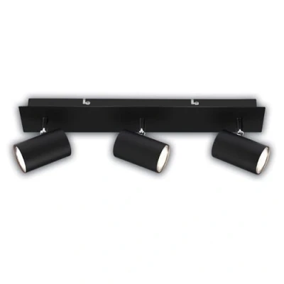 Highest energy efficiency class A: The 3-lamp ceiling spotlight is equipped with three 2W GU10 LED lamps, each providing 450 lumens at a warm colour temperature of 3000K, which ensures excellent energy efficiency Long service life: The LEDs of the ceiling spotlight offer an exceptionally long service life of 50,000 hours, resulting in fewer replacements and lower maintenance costs Chic black metal design: The elegant black finish of the metal gives the spotlight a modern look that blends seamlessly into any interior Flexible lighting design: The rotating and tilting heads of the nursery lamp allow flexible and targeted lighting, perfect for highlighting specific areas or objects Extended dimensions for wider applicability: With a length of 450 mm, a width of 80 mm and a height of 123 mm, this luminaire is ideal for work areas in the kitchen, dining table in the dining room or for accent lighting in the hallway