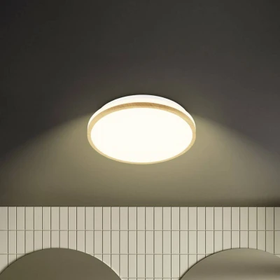 Acorus LED ceiling light in wood-coloured design – including IP code IP44 The Acorus LED ceiling light in a wood-coloured design combines modern design with functional lighting. The integrated LED light source provides energy-saving, warm white light with a colour temperature of 3,000 Kelvin, creating a pleasant atmosphere. The light wood look combined with white accents gives any room a stylish touch, while the high-quality plastic construction ensures durability. Thanks to its IP code rating, the Acorus light is ideal for use in bathrooms as it is reliably protected against splashing water.