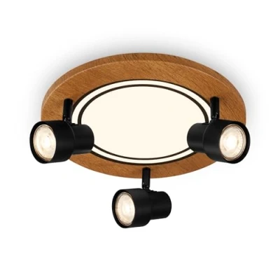 Briloner LED Ceiling Light with spotlights, Warm White Light, swivelling Wooden lamp, Living Room lamp 12W Memory Function, 300x155mm (DxH)