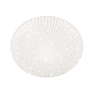Stylish modern LED ceiling light with starry design: This elegant lamp features decorative elements and a sparkling star effect, creating an atmospheric and cozy illumination for living rooms and bedrooms Bright neutral white lighting for a comfortable ambiance: Equipped with a 20W LED module (2,400lm, 4,000K), this dining room ceiling light delivers even and bright illumination, ideal for relaxed and inviting spaces Glare-free light diffusion for optimal comfort: The high-quality diffuser of this bedroom lamp ensures soft, even light distribution, reducing glare while blending harmoniously into modern interiors Versatile use in different spaces: Whether in bedrooms, children's rooms, or hallways, the combination of functional lighting and a decorative starry effect makes this ceiling light for hallways a standout feature Compact dimensions with a sleek design: With a diameter of 380mm and a height of 70mm, this ceiling light for hallways integrates seamlessly into various décor styles, providing both practicality and aesthetic appeal This product is a surrounding product. Surrounding products are luminaires that can be dismantled for separate inspection of the light source(s) they contain. This product contains a light source of energy efficiency class E