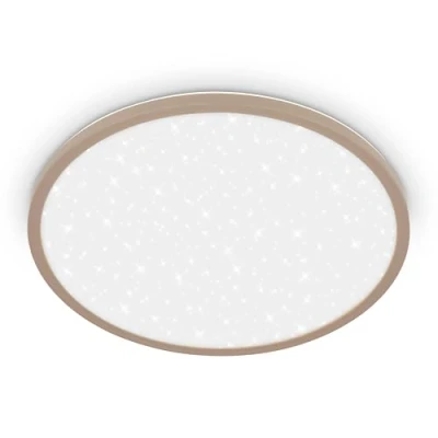 Slim modern LED ceiling light with star cover: This elegant beige LED panel combines a sleek design with a subtle star effect, making it a stylish lighting solution for living spaces, bedrooms, or hallways Bright and neutral illumination: Equipped with a 22W LED module (3,000lm, 4,000K), this dining room ceiling light provides clear, neutral white light, creating a comfortable and inviting atmosphere for various settings Integrated backlight effect for added ambiance: The additional backlight of this bedroom lamp enhances the room’s aesthetics with indirect lighting, contributing to a warm and modern interior design Decorative design with a stylish touch: The star cover adds an elegant look to this ceiling light for hallway, seamlessly combining functionality with decorative appeal to complement any contemporary space Compact dimensions for a seamless fit: Measuring Ø375mm in diameter and only 45mm in height, this ceiling light for hallway is perfect for rooms with low ceilings or minimalist décor, offering subtle yet effective illumination This product is a surrounding product. Surrounding products are luminaires that can be dismantled for separate inspection of the light source(s) they contain. This product contains a light source of energy efficiency class D