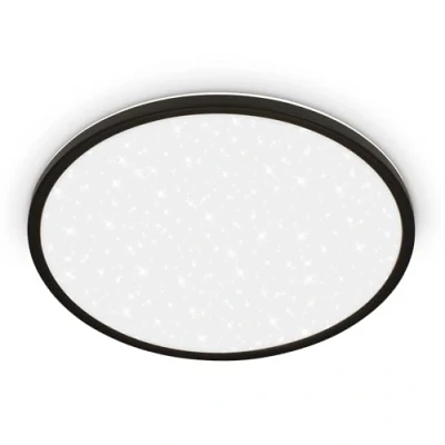 Slim modern LED ceiling light with star cover: This elegant black LED panel combines a sleek design with a subtle star effect, making it a stylish lighting solution for living spaces, bedrooms, or hallways Bright and neutral illumination: Equipped with a 22W LED module (3,000lm, 4,000K), this dining room ceiling light provides clear, neutral white light, creating a comfortable and inviting atmosphere for various settings Integrated backlight effect for added ambiance: The additional backlight of this bedroom lamp enhances the room’s aesthetics with indirect lighting, contributing to a warm and modern interior design Decorative design with a stylish touch: The star cover adds an elegant look to this ceiling light for hallway, seamlessly combining functionality with decorative appeal to complement any contemporary space Compact dimensions for a seamless fit: Measuring Ø375mm in diameter and only 45mm in height, this ceiling light for hallway is perfect for rooms with low ceilings or minimalist décor, offering subtle yet effective illumination This product is a surrounding product. Surrounding products are luminaires that can be dismantled for separate inspection of the light source(s) they contain. This product contains a light source of energy efficiency class D