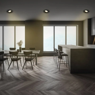 Practical Desi LED light - can be used as a recessed or surface-mounted light The small round Desi LED light can be used both as a recessed light and as a surface-mounted light. It can be externally dimmable and can be swivelled. It can be used in almost any room in the house.