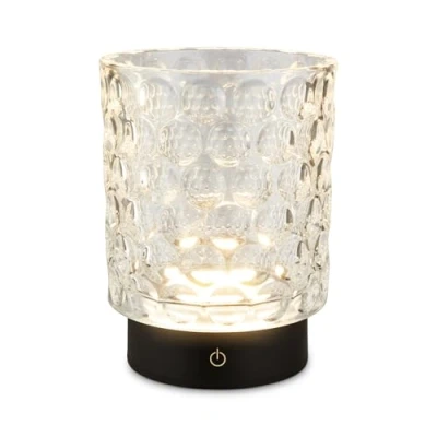 Elegant glass design - Stylish table lamp with robust glass body in an appealing grey, which not only illuminates but also serves as a decorative element Mood lighting as required - rechargeable lamp including 3-stage touch dimmer for setting the perfect brightness for every occasion (100%, 50%, 15%) Warm white LED light - night light equipped with a 2W LED module that emits a warm white light with 150 lumens and 2,700 Kelvin, ideal for a cosy atmosphere Flexibility and mobility - The LED lamp can be used anywhere and is easy to transport thanks to the replaceable rechargeable battery and convenient USB charging with the 0.5 m USB cable supplied For indoor and outdoor use - Splash-proof outdoor lamp with IP44 rating and additional mechanical on/off switch to protect against deep discharge