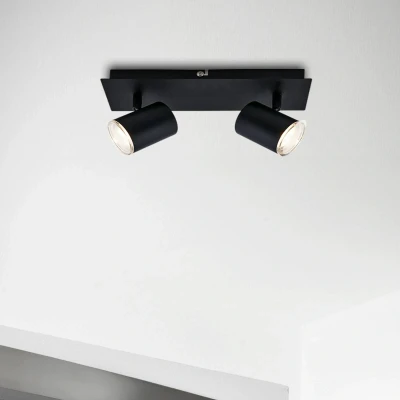 Amazon MarketplaceModern 2-bulb spotlight in black, made of metal plastic Thanks to its simple design, this ceiling light is versatile and is particularly suitable as a bathroom light thanks to the protection class IP44 (splash-proof) Thanks to the rotating and swivelling spot heads, you can control the light individually and adjust it to your needs The ceiling spotlight has two LED/GU10 sockets - the bulbs are not included Product dimensions: 290 x 99 x 112 mm (L x W x H) Bulbs are not included