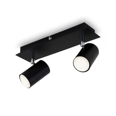 AmazonModern double ceiling light in Black, Made of metal The rotating and swivelling spotlights enable the light to be adjusted according to personal preference. Its elegant design gives the ceiling lamp a versatile range of uses, e.g. As a living room or bedroom lamp The maximum wattage for this lamp is 40 Watts (GU10) - Bulbs are not included in the delivery The simple ceiling light has IP20 protection and is intended exclusively for indoor use Product dimensions: 290x80x123mm (lxwxh)