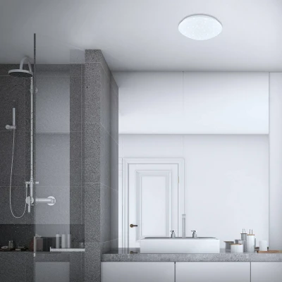Round LED ceiling lamp Elipso, IP44, universal white distribution, with starry sky effectIn numerous environments from the hallway to the bathroom, the LED ceiling lamp Elipso not only provides effective general lighting but also a decorative starry sky effect. The round, convex plastic cover ensures a wide-area diffusion of the universal white light and is also provided with numerous small openings that create a decorative sparkle.- Protection class: IP44