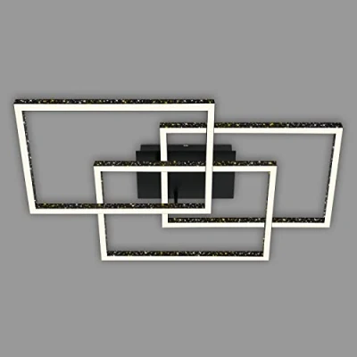This LED frame is characterised by its glitter effect, which is created by the laser hole look. The LEDs shine through small openings on the side of the LED ceiling lighting This 3-bulb ceiling light is an ideal living room lamp, bedroom lamp or even as a ceiling light for the hallway. Thanks to its swivelling light sources, you can adjust the light according to your needs 3 dimming levels of 20%, 50% and 100% can be switched via a conventional light switch. You do not need an additional dimmer. A built-in memory function stores the last selected dimming level for the next switching on The LED technology ensures a power consumption of 57 watts with a brightness of 6300 lumens. The 3000 Kelvin create a warm white colour temperature and create a homely atmosphere. The dimensions of the frame light are 800 x 495 x 130 mm (L x W x H). The colour of the living room lamp is black This product is a surrounding product. Ambient products are lights that can be disassembled for separate checking of the included light source(s)