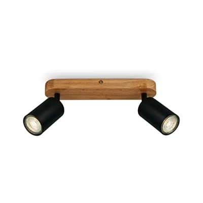 BRILONER Leuchten Retro Ceiling Light with Wood, 2 Bulb Vintage Light, 2X GU10 Sockets, Adjustable LED Spotlight, Rustic Black/Wood, 270 x 60 85 mm