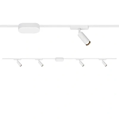 Materials and finishes: Made of metal with an elegant white finish, the system offers a modern design and high quality Lighting power: four cylindrical LED spotlights with a power of 5W each, 450 lumens and a warm color temperature of 3000K ensure uniform illumination Longevity: each spot has a lifespan of 20,000 hours and offers excellent colour rendering with a colour rendering index (Ra) of ≥90 Accessories: Kit includes 100W transformer for central power, two end caps, two 1m rails and a linear connector This product is a surrounding product. Wrap-around products are luminaires that can be disassembled for separate control of the light source(s) they contain. This product contains a light source of energy efficiency class G