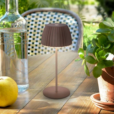 Brilo unplugged Riffle LED rechargeable mini table lamp with light edge on the lampshade The Brilo unplugged Riffle LED rechargeable mini table lamp combines modern design with functional lighting. The integrated LED light source provides energy-saving light with a warm white colour temperature of 2,700 K. A special feature of this table lamp is the practical stepless touch dimmer. The scope of delivery includes a USB-C charging cable, which supports wireless use of the light. This light also has a memory function. - With a full battery, up to 24 hours of light at the lowest brightness level - With mechanical on/off switch to prevent deep discharge - A USB-C charging cable is included in the scope of delivery - Awards: German Design Award 2025, Best of Design Award 2025 from Schöner Wohnen, 2nd place in the Light of the Year competition