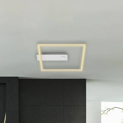 Lights.coNici LED ceiling lamp in modern design with sensor controlThe Nici ceiling lamp made of metal is a practical light source for modern living rooms and lounges. Below the rectangular canopy is a large, square frame, the underside of which houses the warm white LEDs behind a satinised plastic cover. They are switched on automatically via the daylight and motion sensor built into the canopy, which can be configured as required before installation.Technical data sensor:- Angle of detection 120°- Range max. 6 m (adjustable)- Twilight threshold adjustable from 10 to 2,000 lx- Follow-up time of the light in case of motion detection adjustable from 5 s to 8 min