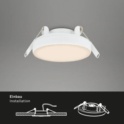 White LED recessed ceiling spotlight Plat - in a practical set of 3 The LED recessed ceiling spotlight Plat consists of a white body made of plastic and is supplied in a practical set of 3. The frameless recessed lights are equipped with warm white LEDs, which emit their light glare-free into the room and provide a cozy atmosphere. Thanks to the IP44 protection rating, the LED lights are also sufficiently protected against splashing water, which means that they can also be used as a light source in the bathroom at home or in other damp rooms