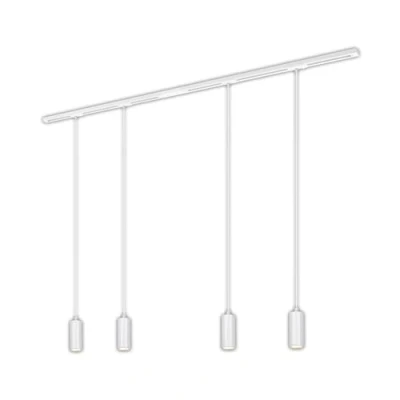 Kit contents: Includes white power supply (80002006), two 0.75m white rails (8003006) and four dimmable white LED pendant lights (8008016) Lighting power: the four LED pendant lights ensure efficient and clear light and provide targeted lighting along the rail Rail system: The 1.5 m long straight rail ensures a clear and uniform arrangement of LED pendant fixtures and allows flexible light orientation Flexibility: the suspensions can be moved along the rail, allowing flexible positioning and individual lighting design. The possibility of dimming ensures a suitable brightness This product is a surrounding product. Wrap-around products are luminaires that can be disassembled for separate control of the light source(s) they contain. This product contains a light source of energy efficiency class F