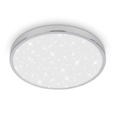Bathroom lamp with starry cover: This stylish chrome ceiling light features a sparkling star pattern and a 12W LED board (1,300lm, 4,000K), providing uniform, neutral white illumination for bathrooms and other spaces Splash protection IP44: With an IP44 rating, this LED light is ideal for humid environments such as bathrooms or guest WCs, offering reliable protection against moisture and splashing water Compact dimensions: Measuring 240mm in diameter and just 60mm in height, this ceiling light is space-saving and perfect for small rooms or areas with low ceilings, ensuring seamless integration High-quality finish: The chrome surface gives this LED light a sleek and timeless look, blending effortlessly into various bathroom styles while adding a touch of modern elegance Versatile application: This ceiling light is perfect for bathrooms, guest WCs, or humid spaces, offering a stylish yet practical lighting solution that enhances any contemporary interior