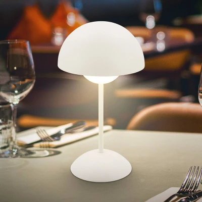Kugle LED rechargeable table lamp: Dimmable light for stylish outdoor areas The Kugle LED rechargeable table lamp combines modern Scandinavian design with functional versatility. It is made of metal and plastic. With an IP code of IP44, it is ideal for use on balconies and terraces, as it is reliably protected against splashing water. The integrated LED light source provides energy-saving, warm white light with a colour temperature of 2,700 Kelvin, creating a pleasant atmosphere. A special feature of the Kugle LED rechargeable table lamp is its dimmability, which is made possible by the included touch dimmer. This function allows you to adjust the light intensity individually to create the desired mood. - Includes USB-C cable - Includes 3.7V 2,000mAh Li-ion battery - Maximum light duration 18 hours - Includes memory function