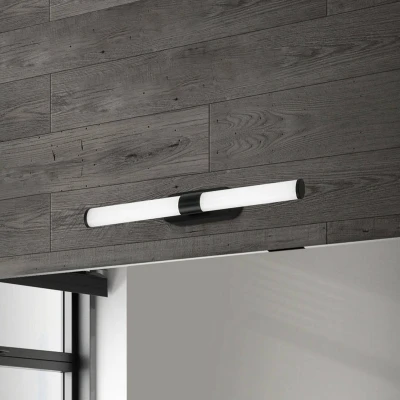 The black plastic mirror bathroom light is the ideal lighting solution for your bathroom. A neutral white light of 4000 Kelvin provides a perfect light colour for hygiene. With its dimensions of 400x65x45 mm (WxHxD), it has a very good size. In addition, the bathroom lamp offers sufficient protection against moisture and splashes of water thanks to its IP44 protection rating. The LED turntable supplied with the LED light has a power of 7 watts and 690 lumens and a long life of 25,000 hours. Installed as a wall light next to or above your mirror and vanity cabinet, LED bathroom mirror lighting is a great choice for long-lasting and energy efficient lighting. This product is a surrounding product. Wrap-around products are luminaires that can be disassembled for separate control of the light source(s) they contain. This product contains a light source of energy efficiency class F
