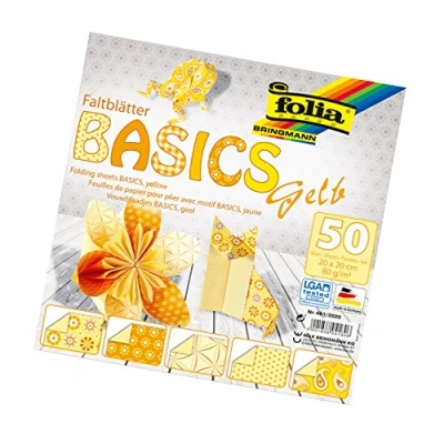 Bringmann Folia Basics folding sheets, 80 g/qm, 50 sheets assorted in 5 designs, yellow, 20 x cm