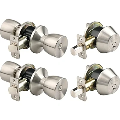 Keyed alike entry door knob and single cylinder deadbolt (2 each) Meets ANSI Grade 3 standards for pick, drill and bump resistance 1 inch deadbolt and steel anti-saw pin 4-way adjustable latch that fits any 2-3/8" or 2-3/4" backset Easy to install and fits all doors 1 3/8 inch to 1 3/4 inch thick, Manufacturer: Hampton Products