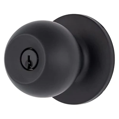 BRINKS Transitional Keyed Entry Ball Door Knob, Matte Black Designed for Traditional and Homes Blends Seamlessly with Interior Décor