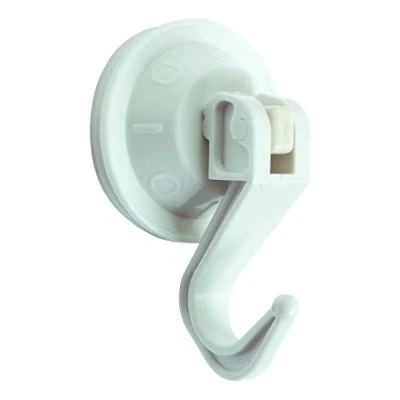 ABS plastic hanger with rubber suction cup Articulated hook to apply pressure to the rubber suction cup Size: ø 44 mm Colour: white