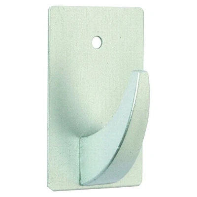Hanger with stainless steel base of 0.8 mm thick; hook in the shape of fang in plastic abs High quality adhesive Screw grip hole on porous or low adhesion surfaces Size: 30 x 50 mm. Colour: Matt Chrome