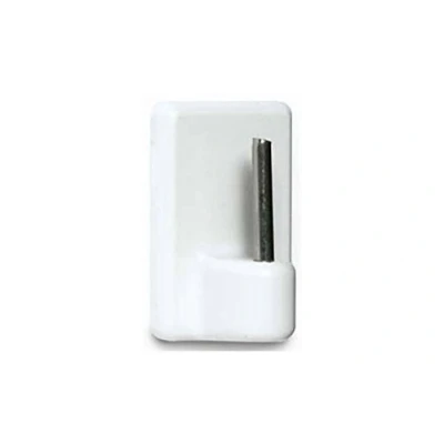 pvc plastic hanger with stainless steel embedded rod Designed for curtain rod support High quality adhesive Size: 17 x 25 mm. Colour: white.