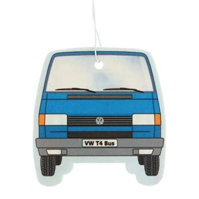 FRAGRANCE: Light, refreshing "Fresh" in the color Blue. Great air freshener in the design of VW T4 Bus in front and rear view, sold individually. Dimensions: 7.6 x 8 cm (3 x 3.1 inches). DOSAGE: Done through the surface and guarantees a subtle and long-lasting fragrance release. For individuals with a high sensitivity to scents, we recommend initially opening the packaging in just one spot. MULTIFUNCTIONAL: The pleasantly scented aromas are a great accessory. They can be used in cars, camper vans, tents, or even in living spaces, enchanting with pleasant fragrances. MATERIAL: We directly print 4-color on a double-sided printed special cardboard for the best possible quality. OFFICIALLY LICENSED: The air fresheners in VW T4 Bus design are an officially licensed product by Volkswagen. All our items are developed in Germany to meet our high quality standards.