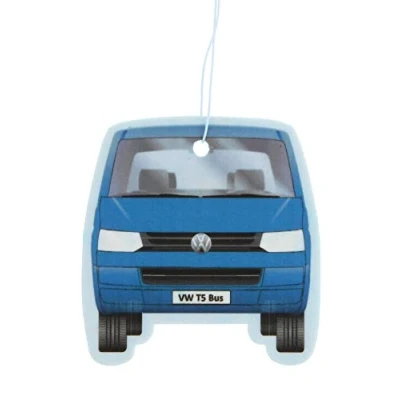 FRAGRANCE: Light, refreshing "Fresh" in the color Blue. Great air freshener in the design of VW T5 Bus in front and rear view, sold individually. Dimensions: 7.6 x 8 cm (3 x 3.1 inches). DOSAGE: Done through the surface and guarantees a subtle and long-lasting fragrance release. For individuals with a high sensitivity to scents, we recommend initially opening the packaging in just one spot. MULTIFUNCTIONAL: The pleasantly scented aromas are a great accessory. They can be used in cars, camper vans, tents, or even in living spaces, enchanting with pleasant fragrances. MATERIAL: We directly print 4-color on a double-sided printed special cardboard for the best possible quality. OFFICIALLY LICENSED: The air fresheners in VW T5 Bus design are an officially licensed product by Volkswagen. All our items are developed in Germany to meet our high quality standards.