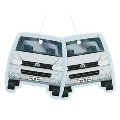 FRAGRANCE: Fresh, nostalgic "New Car" in the color Gray. Great air freshener in the design of VW T5 Bus in front and rear view, sold in a set of 2. Dimensions: 7.6 x 8 cm (3 x 3.1 inches). DOSAGE: Done through the surface and guarantees a subtle and long-lasting fragrance release. For individuals with a high sensitivity to scents, we recommend initially opening the packaging in just one spot. MULTIFUNCTIONAL: The pleasantly scented aromas are a great accessory. They can be used in cars, camper vans, tents, or even in living spaces, enchanting with pleasant fragrances. MATERIAL: We directly print 4-color on a double-sided printed special cardboard for the best possible quality. OFFICIALLY LICENSED: The air fresheners in VW T5 Bus design are an officially licensed product by Volkswagen. All our items are developed in Germany to meet our high quality standards.