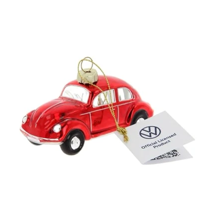 VW BEETLE: Detailed glass ornament in the design of the classic VW Beetle, perfect for adding a touch of nostalgia to any Christmas tree. PRACTICAL DETAILS: Comes in an attractive gift box, ideal for safe keeping or gifting during the festive season. MULTIFUNCTIONAL: Can be used not only as a tree decoration, but also as a stylish element in Christmas arrangements or at the window. TECHNICAL DETAILS: Handcrafted from high-quality glass, painted with attention to detail to replicate the iconic shape and color of the VW Beetle. OFFICIALLY LICENSED: An officially licensed Volkswagen product that guarantees authenticity and the high quality of the original.