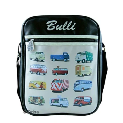 BUS PARADE/BLACK: The iconic shoulder bag is in black and features various colorful VW Bus models on an exterior pocket. Dimensions: 26 x 33 x 9 cm (10.2 x 13 x 3.5 inches). Bus PARADE/BLACK: the iconic shoulder bag is in black and features various colorful VW Bus models on an exterior pocket. Dimensions: 26 x 33 x 9 cm (10.2 x 13 x 3.5 inches). PRACTICAL: Useful interior compartments, an exterior pocket, and a comfortable shoulder strap make it a perfect companion. The shoulder bag brings you joy both in carrying and looking at it. MULTIFUNCTIONAL: The lovingly designed bag is an excellent companion for everyday life, university, or the office. Perfect for all trendsetters and VW T1 Bus enthusiasts. TECHNICAL Details: The VW T1 bag, made of high-quality faux leather, features interior lining with VW logo and Bus silhouette print. A separate mesh compartment keeps the contents organized. OFFICIALLY LICENSED: The VW T1 Bus shoulder bags are an officially licensed Volkswagen product. Our items are designed in Germany to meet our high quality standards.
