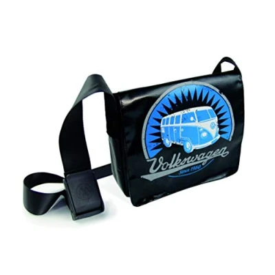 VINTAGE/BLACK: The practical shoulder bag in black showcases the vintage logo with the VW T1 Bus and is adorned with the "Volkswagen Since 1950" inscription. Dimensions: 28 x 23 x 17 cm (11 x 9 x 6.7 inches). PRACTICAL Details: Many useful interior compartments, two external zippered pockets, and a comfortable shoulder strap make this bag a perfect companion. The shoulder bag is closed with two hidden magnets on the inside. MULTIFUNCTIONAL: The bag is an excellent companion for everyday use, university, or the office. Perfect for trendsetters and VW T1 Bus enthusiasts. TECHNICAL Details: The VW T1 Bus bags are made of durable Tarpaulin material. They are equipped with a high-quality denim lining and multiple compartments (including one for notebooks up to 10 inches) and smaller sections. OFFICIALLY LICENSED: The VW T1 Bus shoulder bags are an officially licensed Volkswagen product. All our items are developed in Germany to meet our high-quality standards.