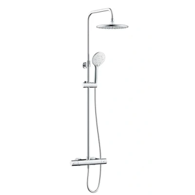 - Thermostatic Control: The shower is equipped with a thermostatic cartridge that maintains a constant temperature, incorporating a maximum temperature stop set at 38°C. This feature can be overridden to a maximum of 43°C with a dedicated button, preventing accidental adjustments by vulnerable users.