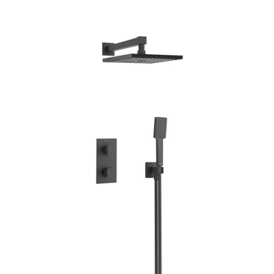 All in one box - pack includes shower valve with integral two outlet diverter, slimline 200mm square drench head with shower arm, plus a rub clean single function handset and wall outlet Rub clean handset and drench head - limescale and debris build-up is quickly and easily removed by rubbing a finger or a cloth over the nozzles Easy installation with an adjustable faceplate that fits total wall depths from 60mm to 75mm for a perfect flush finish Integral two outlet diverter so you can easily switch between the handset or drench head Thermostatic cartridge with preset temperature safety stop at 42°C for family-safe showering A higher temperature can be selected, if required, by selecting the override function Dual control - Flow and temperature are operated separately giving accurate control of both Dual control - Flow and temperature are operated separately giving accurate control of both Cartridge can be accessed from the front for easy servicing Automatic shut-off in the event of
