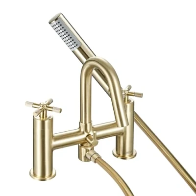 Bristan Cruzar Bath Shower Mixer with Easy Clean Handset, Deck Mounted, Brushed Brass Finish