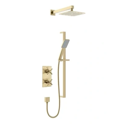 Bristan Cruzar Thermostatic Shower Mixer with Safe Touch Technology and Two Outlets, Brushed Brass Finish