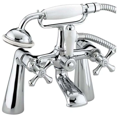 General description The Bristan Colonial Bath Shower Mixer Tap in chrome plated finish combines traditional design with modern functionality. Constructed from durable brass, this tap is suitable for all plumbing systems and features a robust metal fixing nut to ensure stability over time. The tap includes a 1.5m hose, cradle, and a single function handset, making it a practical addition to any bathroom. Technical specifications Body Material: Brass Colour: Chrome Tap Height: 260mm Tap Spout Reach: 140mm Tap Base to Spout: 60mm Inlet Connection Size: 3/4 BSP Inlet Centres: 180mm Minimum Pressure: 0.2 Bar Maximum Pressure: 5.0 Bar Tap Handle(s): 3 Tap Hole(s): 2 Tap Head Shape: Crosshead/Lever Tap Operation: Standard Valve/Cartridge Type Manual Flow Rate @ 0.3 Bar: 10.7 l/min (Bath Filler), 7 l/min (Handset) Flow Rate @ 0.5 Bar: 19 l/min (Bath Filler), 8.1 l/min (Handset) Flow Rate @ 1.0 Bar: 27.3 l/min (Bath Filler), 11.8 l/min (Handset) Flow Rate @ 2.0 Bar: 37.62 l/min (Bath Filler),