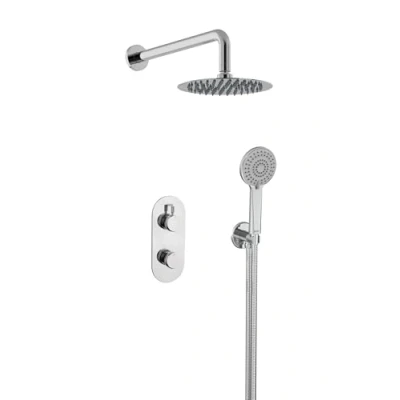 All in one box - pack includes shower valve with integral two outlet diverter, slimline 200mm round drench head with shower arm, plus a multi function handset and wall outlet Multi function rub clean handset and drench head - limescale and debris build-up is quickly and easily removed by rubbing a finger or a cloth over the nozzles A hard-wearing, flawless, scratch resistant chrome finish that lasts for years Salt spray tested to ensure added durability Easy installation with an adjustable faceplate that fits total wall depths from 60mm to 75mm for a perfect flush finish Dual control - Flow and temperature are operated separately giving accurate control of both Cartridge can be accessed from the front for easy servicing Cartridge can be accessed from the front for easy servicing 15mm inlet connections 5-year parts and 1 year labour guarantee for peace of mind Also available in other finishes.