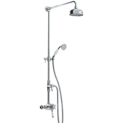 General description This Bristan 1901 Exposed Concentric Chrome Shower Valve Diverter and Rigid Riser Kit combines traditional design with modern functionality. It features a thermostatic cartridge with a preset temperature stop at 42°C, ensuring a safe and comfortable shower experience. The kit includes an external diverter, shower rose, rigid riser, and handset, making it a complete solution for your bathroom. Additionally, factory-fitted flow regulators contribute to water savings, making this an eco-friendly choice. Technical specifications Model Number: N2-CSHXDIV-C Brand: Bristan Dimensions: 16cm x 56cm x 139cm Inlet connections: 15mm Adjustable inlets for existing pipework centres between 136mm and 158mm