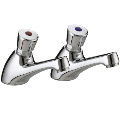 National Shower SparesBristan Timed Flow Basin Taps - Chrome. Factory set to close after approximately 9 seconds. Soft touch easy to use mechanism. Timed shut off to meet BS EN 816. Supplied with 5L/min flow regulator. Genuine brand new Bristan product, covered by a Bristan manufacturer's guarantee.