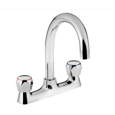 General description The Bristan VAC2 DSM C MT Club Deck Sink Mixer is a stylish and functional kitchen tap designed for modern homes. It features a single flow spout and is supplied with durable metal handles and a metal fixing nut, ensuring longevity and reliability in your kitchen. Technical specifications Maximum hot water temperature: 65°C Maximum static pressure: 10 bar Minimum pressure: 0.2 bar Maximum pressure: 5.0 bar Tap height: 260 mm Tap base to spout: 165 mm Tap spout reach: 1/2 BSP inlet connection size Flow rates: Hot - 0.2 Bar: 13.6 l/min, 0.5 Bar: 22.2 l/min, 1.0 Bar: 31.8 l/min, 2.0 Bar: 45.9 l/min, 3.0 Bar: 56.1 l/min, 5.0 Bar: 74 l/min; Cold - 0.2 Bar: 13.3 l/min, 0.5 Bar: 22.8 l/min, 1.0 Bar: 32.9 l/min, 2.0 Bar: 47.2 l/min, 3.0 Bar: 57.9 l/min, 5.0 Bar: 72.9 l/min; Mixed - 0.2 Bar: 17.2 l/min, 0.5 Bar: 28.8 l/min, 1.0 Bar: 41.8 l/min, 2.0 Bar: 59.7 l/min, 3.0 Bar: 76.1 l/min, 5.0 Bar: 95.4 l/min Material: Brass Colour: Chrome Style: Modern Tap body shape: Round