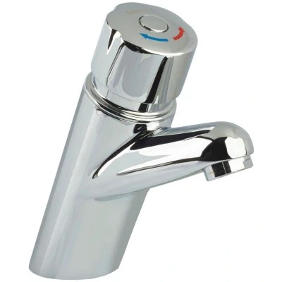 National Shower SparesBristan Timed Flow Temperature Control Basin Tap - Chrome. Timed flow temperature control basin mixer tap with vandal resistant 'release to activate' control and 6Ltr/min flow limiter. Includes PEX flexible hoses, isolation connectors and check valves. Temperature control push button mechanism. Max temperature limiter (adjustable) for user safety. Vandal resistant 'release to activate' mechanism. Timed shut -off to meet BS EN 816. Supplied with 6 L/min flow regulator fitted. Operates at a minimum pressure of 1.0 bar. Genuine brand new Bristan product, covered by a Bristan manufacturer's guarantee.